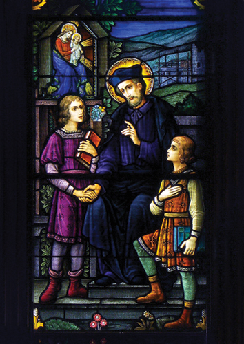 The exquisite stained-glass windows* were installed between the years 1947 and 1951, over 30 years after the opening of Mount St. Michael. They were designed by Zettler Studios in New York, a company of Bavarian artists and master craftsmen. Extensive correspondence between the window maker and the Jesuit superior at Mount St. Michael discussing the plan and design of each window exists in the Jesuit Oregon Province Archives.